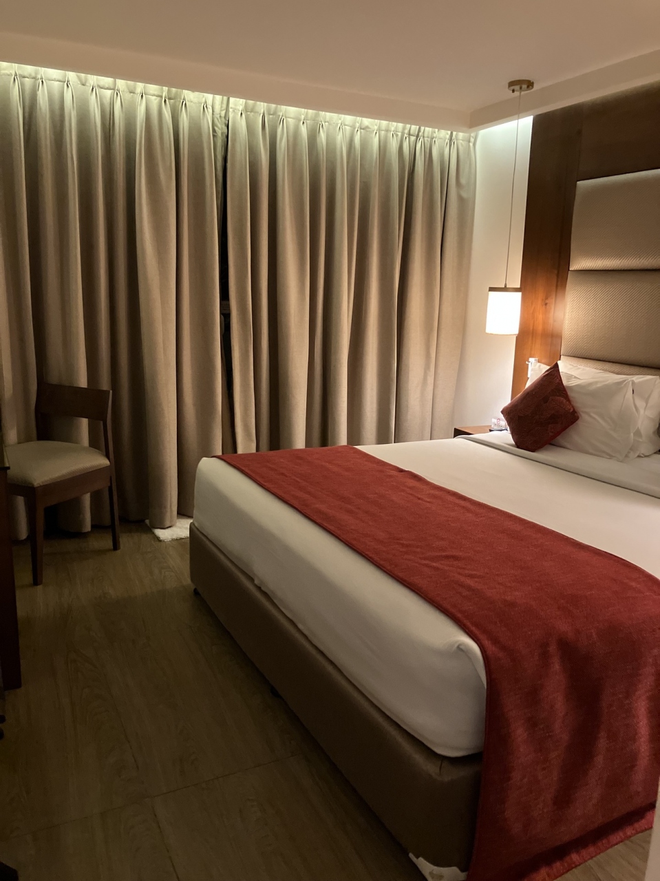 ホテルの正面玄関を過ぎると後は大型バスも止まれるプライベート駐車場のため行き止まりで、道はもちろん綺麗なのですが、幹線道路の入り口がとにかく常時カオスです。最初だけはバスに乗ったままホテルへ行きましたが次からは途中でバスを降りて歩いて正面玄関へ。