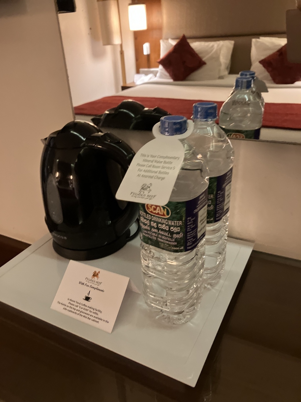 空港から割と近いネゴンボにあるホテルです。インド洋に面していて朝の散歩ができます。ま、風の強い日の翌日だったせいか漂流物が多くて綺麗なビーチとは言えませんでしたが。コロンボの高層ビルがみえます。夜はそのライトがきれいでした。