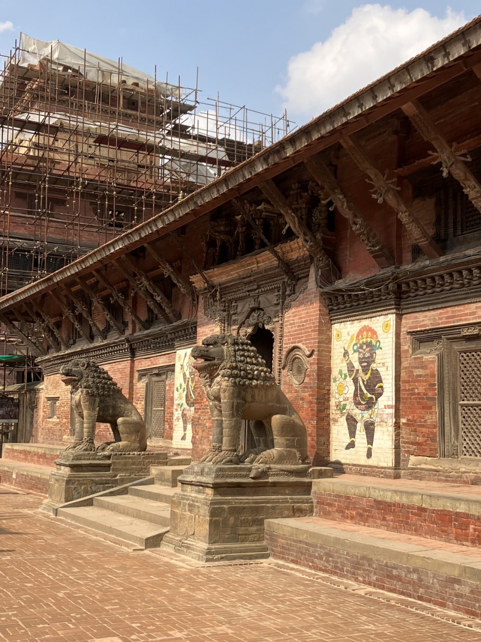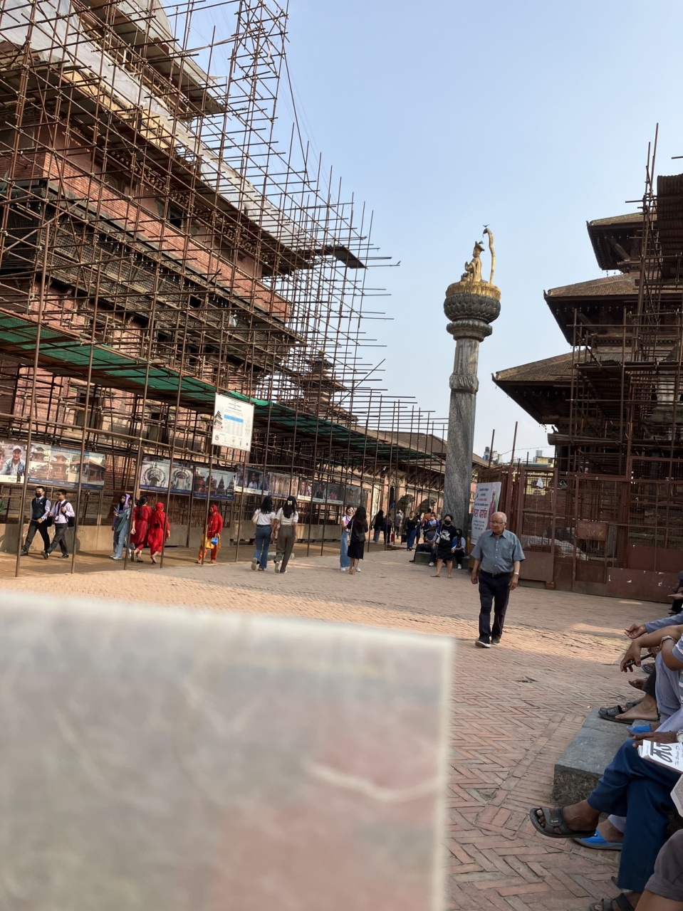 周りはというとたくさんのパゴダが立っています。世界遺産なのです。17~18世紀の建物らしいのですが、2015年の地震で甚大な被害を受けました。