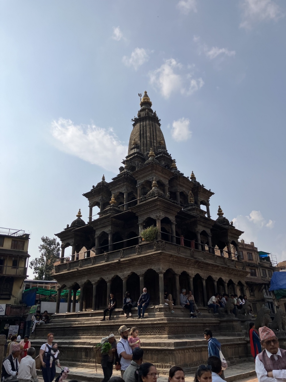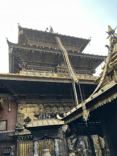 木造やレンガ造りの寺院が多いネパールで、パタン(ラリトプル)にある金箔で覆われた寺院です。