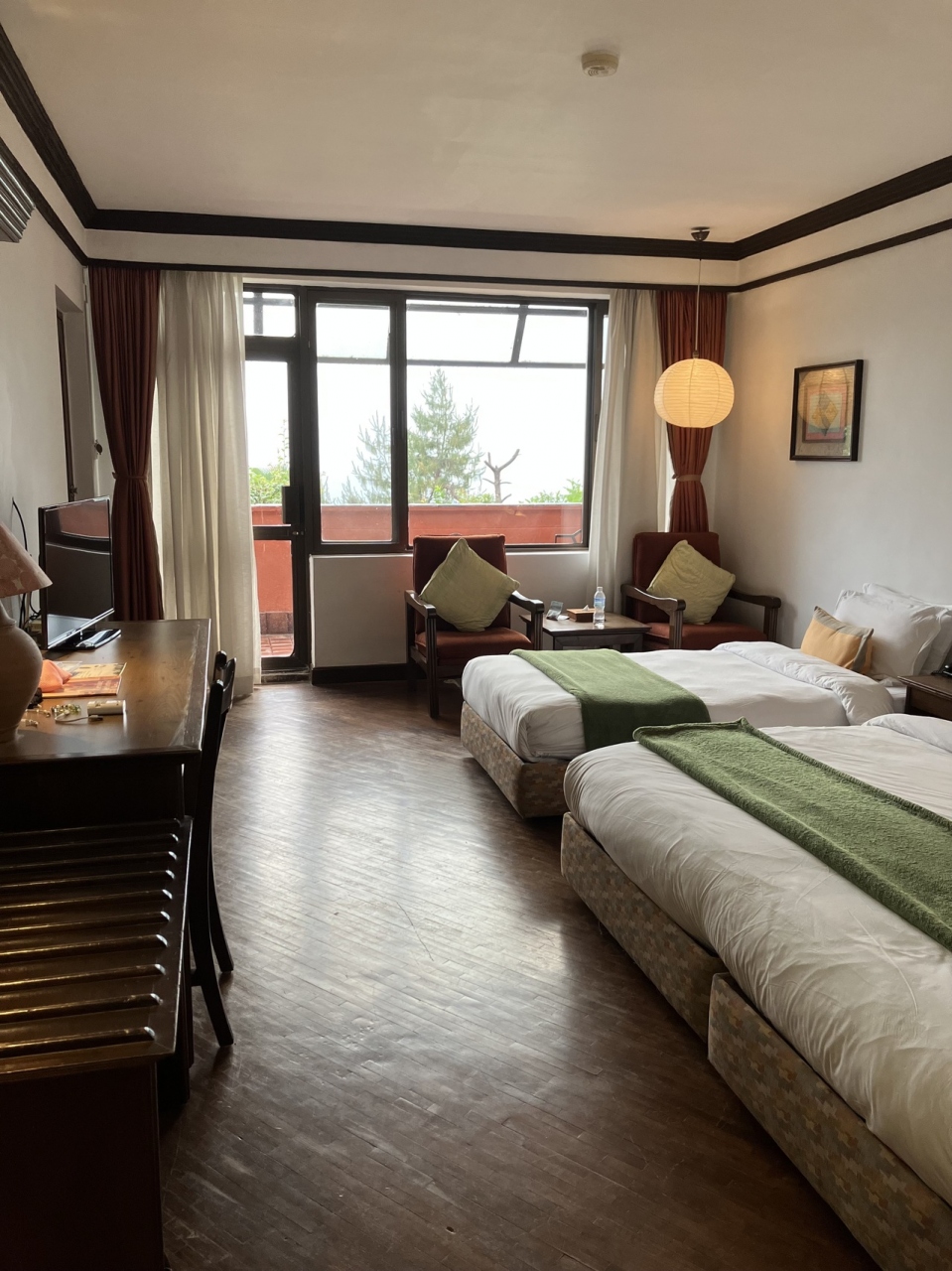 ホテルへの道々には小さなホテルがたくさん建っていました。1400mのカトマンズより標高が高く、2,175mあります。避暑地としても人気かもしれません。