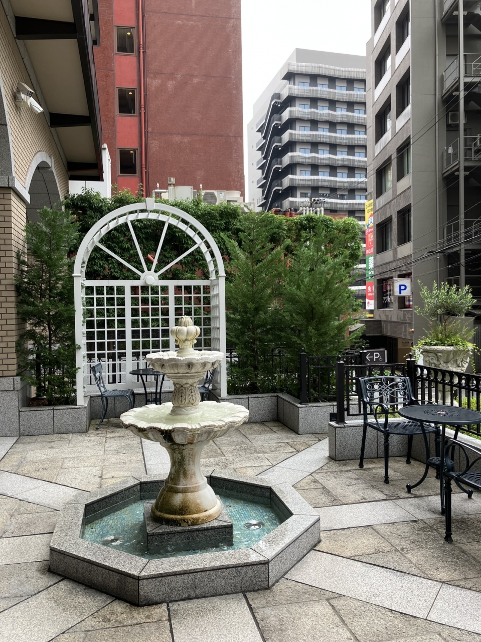 ホテルへのアプローチは若干狭い感じですが、玄関には噴水。これは変わってる。ロビーも異国情緒。エレベーターも同じく。