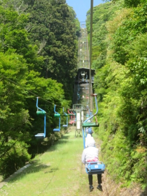 中津の耶馬渓・羅漢寺にある観光リフトで一人づつ乗るタイプです、山頂駅まで往復1000円です、途中にある羅漢寺駅で下車して曹洞宗の古刹羅漢寺を参拝しました、5分位で行くことができます、再び乗って山頂駅に、お花がある広場になっていました、展望台があり、英彦山や阿蘇山を眺めることができます。