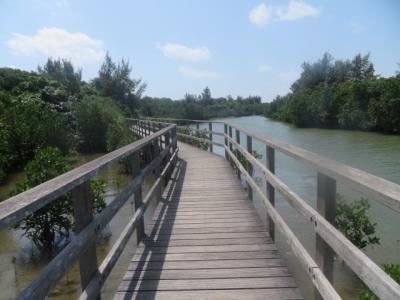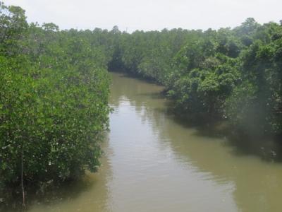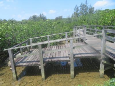 宮古島の北部にあります、広い駐車場とトイレがあります、宮古島で一番大きなマングローブ林です、奥行きが1㎞程の入り江、整備された遊歩道を15分程見ながら歩きました、ツアーの団体客も歩いていました、見られるマングローブはヤエヤマヒルギ、オヒルギ、メヒルギ、ヒルギダマシ、ヒルギモドキの5種です、西表島で見て以来久し振りに見ました