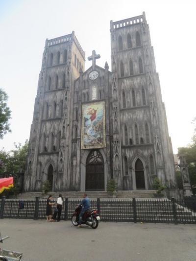 ハノイ市街のニャートー通りから入りました、建物の周りは公園になっていてお花が多く咲いていました、ハノイで最も大きな教会で1886年に仏教寺院跡に建立されました、その後、1900年に現在の姿の建物になりました、ゴッシック様式で二つの塔があります、中はステンドグラスが美しいです、夜はライトアップされます。