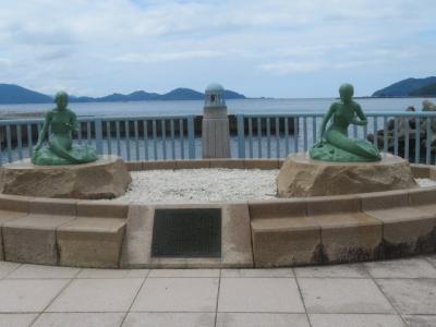 小浜市街の海岸通り沿いにあります、大きな駐車場から散策路を歩いて行きました、人魚の肉を食べて800年間生きたという八百比丘尼の伝説にちなんで昭和51年4月に設置されました、周辺には人魚の浜海岸、海水浴場があり、海に沈む夕日が綺麗です。