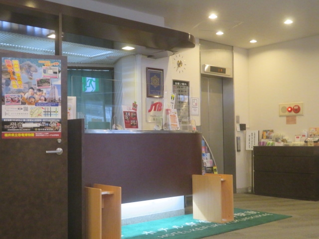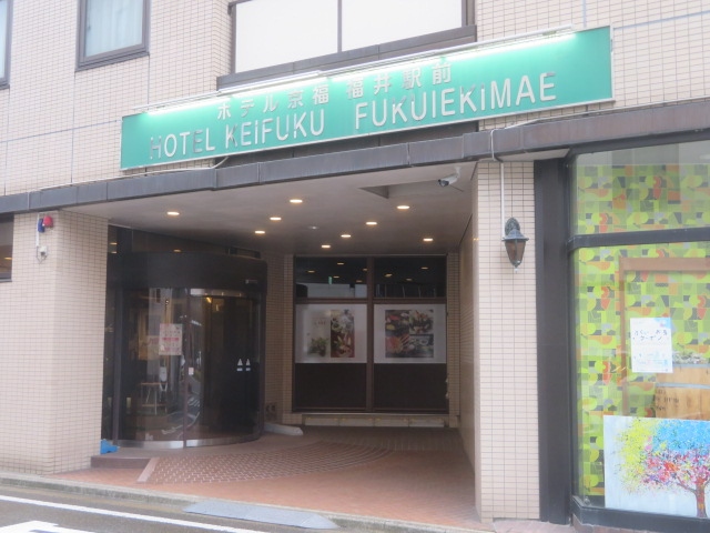 JR北陸本線とえちぜん鉄道の福井駅前にあるビジネスホテル、建物はちょっと古い、普通の広さのビジネスホテルです、1階にある居酒屋で夕食と朝食を食べました、夕食は肉がメインの洋食、朝食はパンがメインの和食でした、駅前でリーズナブルに利用できる便利なホテルでした。