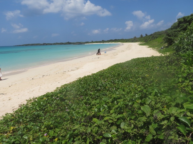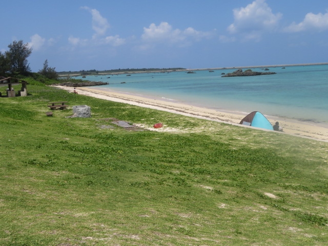 宮古島で最も人気があるビーチです、宮古ブルーの海を見ることができます、7㎞続く白い砂浜です、トイレ、シャワー、売店、バーベキュー、カフェなどの設備があり、多くの人が利用しています、ビーチから来間島、来間大橋が見えます、隣接して東急ホテル&リゾーツがありますした。
