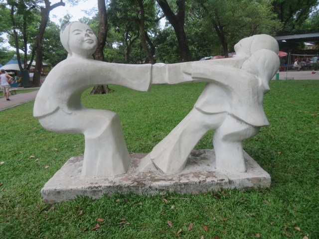 ハノイ市街にある広大な公園です、宿泊したネスタハノイホテルから近かったので行ってきました、チャンニャントン通りにある正面入口から入りました、入園料が要るかと思いましたが無料で入ることができました、公園内散策路を歩きました、入口付近では露店が出ていて衣料品・雑貨品などが売れれていました、小さな遊園地があり、子供も楽しめるので多くの市民が来ていました、南側にはバイマウ湖がありますので眺めも楽しめました。