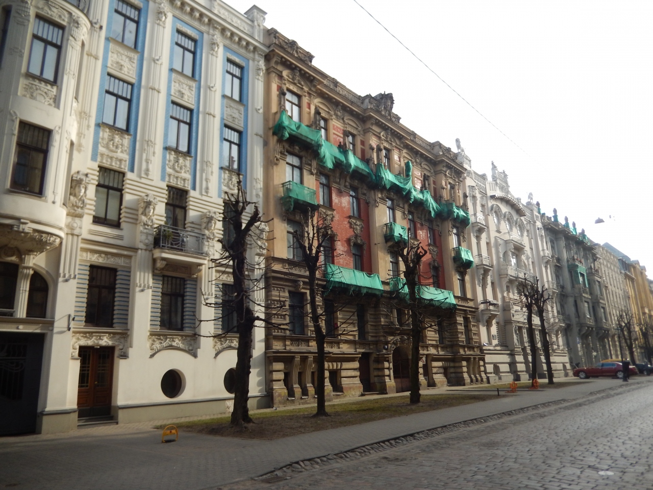 19世紀後半にヨーロッパ各地でブームになった建築様式のユーゲントシュティール様式の建築物がリガ市街のアルベルタ通りやエリザベス通りあり、歴史ある整った建築物を見ながら歩きました。