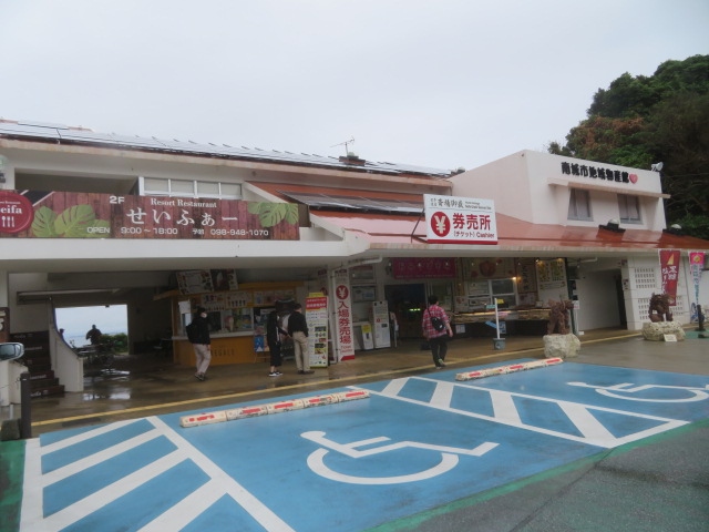 南城市の知念岬公園入口にある物産館です、建物内に斎場御嶽のチケット売場があります、隣接して観光案内所がある、がんじゅう駅・南城があります、建物前にある無料の駐車場を利用して周辺の観光が出来ます、館内には南城市の特産品・物産品が多種販売されいています、久高島の商品もあります、2階にはカフェ・レストランもあります。