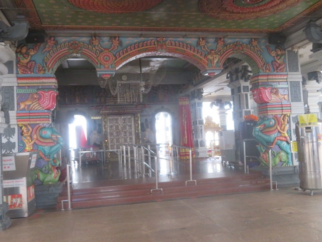 リトル・インディアのMRTファーラーパーク駅から3分位のセラングーン・ロード沿いにあるヒンドゥー教寺院です、1855年に南インドの移民によって建てられています、高さ18m、9層からなるゴープラムが立派です、柱のレリーフや色鮮やかな彫刻が見事で見ごたえがあります、寺院内には靴を脱いで入ります、行った時には人がいなくて静かでした。