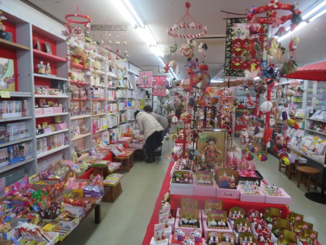 真壁市街中心の御陣屋前通りにある川島書店の江戸時代末期の出来た見世蔵です、土蔵造り2階建てで登録有形文化財に指定されています、蔵が多い真壁でも最も整った江戸型の見せ蔵です、雛祭り期間中には江戸時代の雛、珍しい押絵で出来た雛が展示されています、川島書店では本・文具の他つるし雛やお土産類が販売されています。