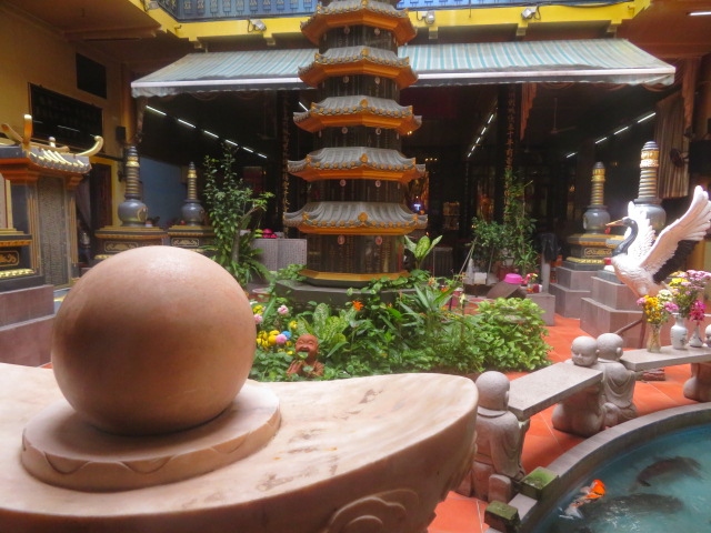 リトル・インディアのレース・ユース・ロード沿い、千燈寺院の裏側にある道教の寺院、1917年中国から伝来の為にシンガポールに来た道教師により建設されました、奥の祭壇には千手観音像やお釈迦様が祀られています、天井、壁、屋根の装飾も見ごたえがありました、以前行った、台湾・台北の龍山寺とは違って規模は小さいです。