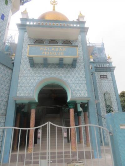 ビクトリアストリートとシャランスルタンの交差点角、宿泊したホテルボスの隣にありました、MRT東西線ラベンダー駅から6分、ブギス駅からでも9分の場所です、玉ねぎ型のゴールデンドームモスクとしても知られています、1963年に南インドケーララ州出身者のコミュニティによりつくられたモスクです、およそ2万枚の青いタイルを使った外観が特徴です、改装中で中に入れないので外から建物だけ見ました。