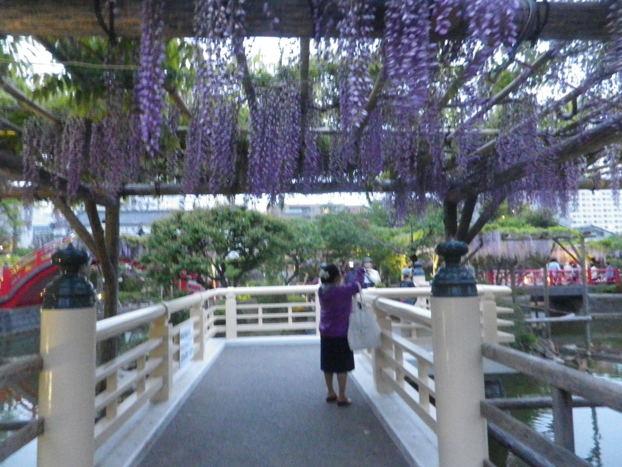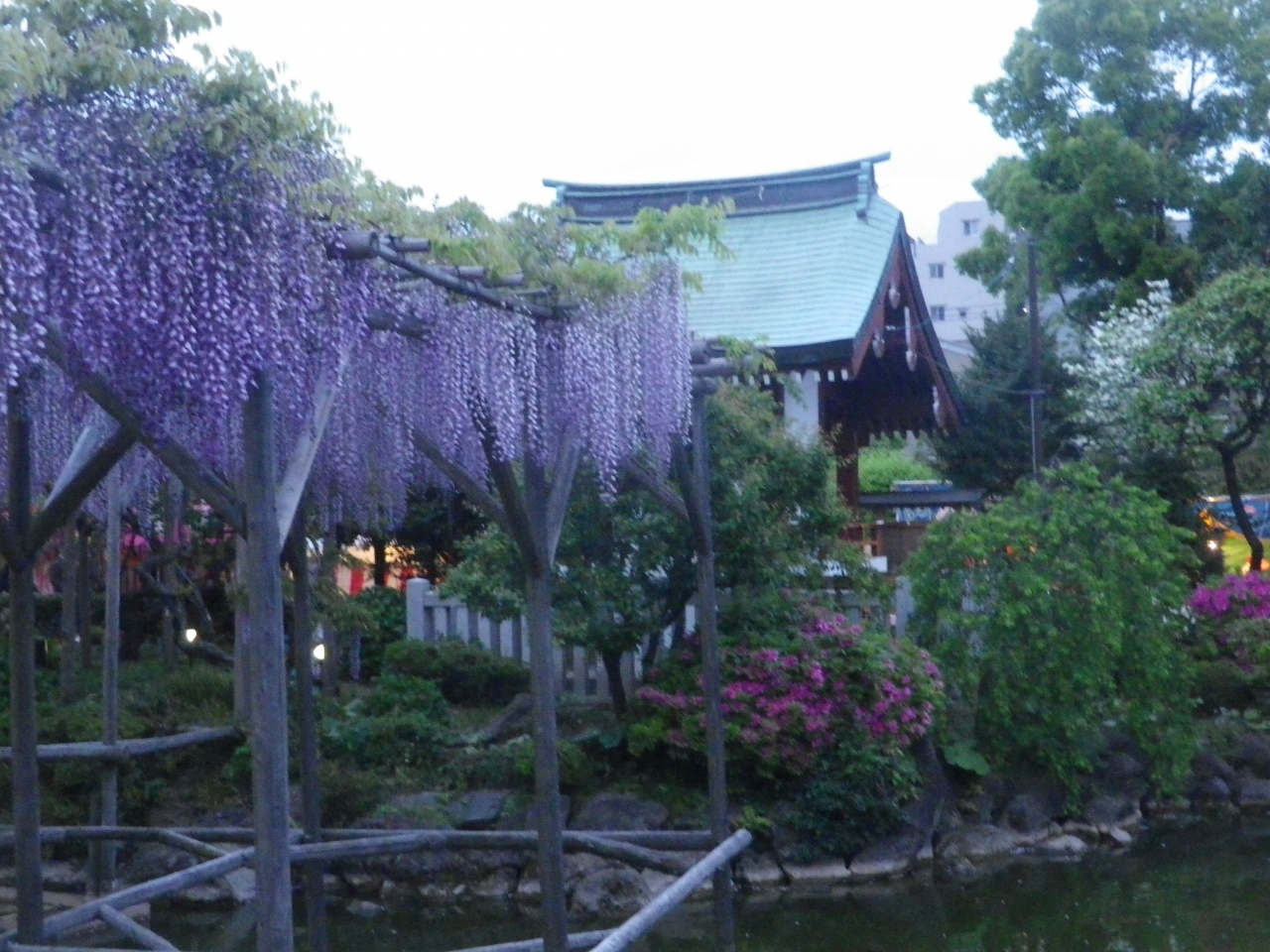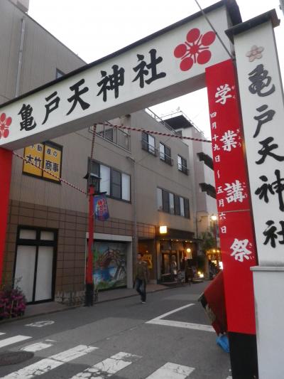 亀戸天神社の春の催しです、4月下旬から5月初めに藤まつりが行われます、神社境内の心字池の周りにある藤が見事に咲きます、夜にはライトアップもされます、まつりらしく露店も多く出て賑やかです、この時期は参拝とお花見が楽しめ、境内から東京スカイツリーも見えますので撮影をする人も多いです