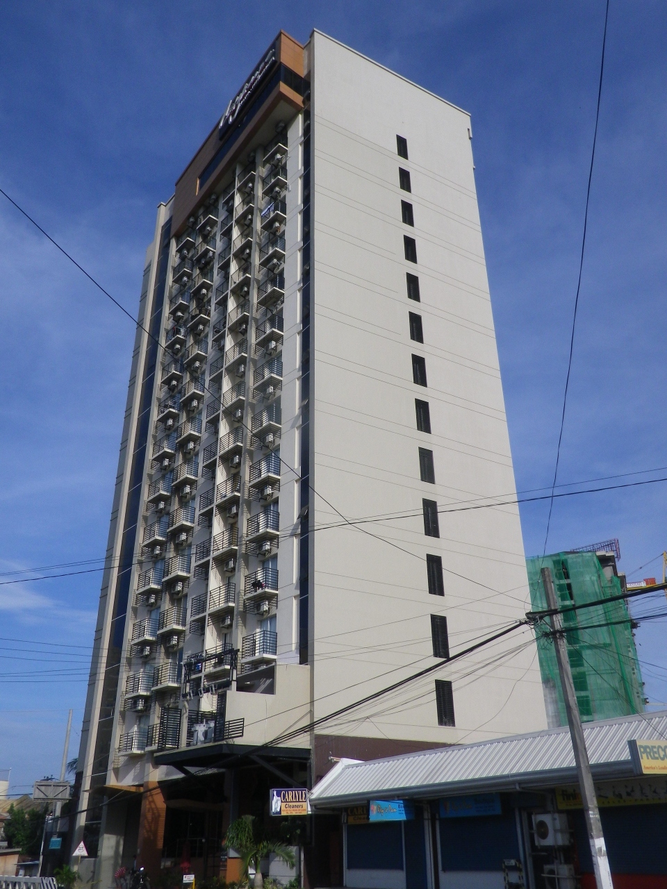 セブ島のマンダウエのちょっと中心から離れた不便場所にありました、食事や買物をする場合も近くにお店が少なく不便です、歩いて5分位の場所にファーストフードのジョリピー、らーめん店、セブンイレブンがあります、ショッピングモールのアヤラまでは20分位歩きます、ホテルのそばからセブシティまで行くジプニーの発着場があります