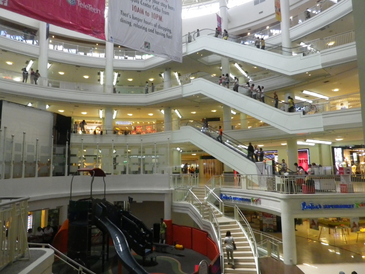 セブ島にある、大きなショッピングモール、敷地も店内も広く、ゆとりがあり、ゆっくり落ち着いてショッピングが出来ます、建物内に中庭があり、散策も出来ます、中庭の周囲に多くのレストラン・コーヒーショップがあり眺めながら飲食が出来ます。