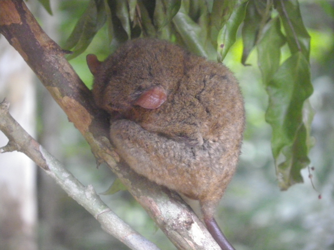 ターシャの見学施設に現地のOPツアー参加で行ってきました、森の中にある散策路の木にいました、寝ていることが多いようでなかなか目があいているはっきりしたターシャを見ることが出来ませんでした。