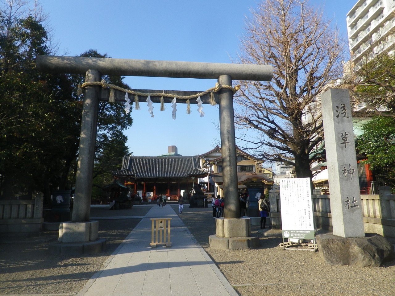 浅草寺の観音堂(本堂)に隣接、二天門からすぐの場所にあります、例大祭の三社祭が有名、社殿は慶安2年(1649年)12月徳川家光が再建したもの、権現造りの社殿は国の重要文化財に指定されている、神社境内に初代花柳壽輔の碑、川口松太郎句碑、久保田万太郎句碑、花塚など多くの碑があります。