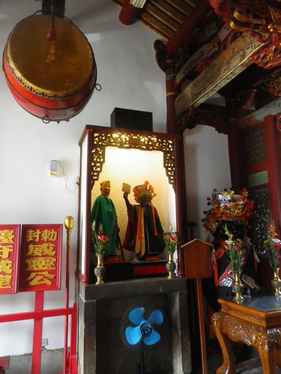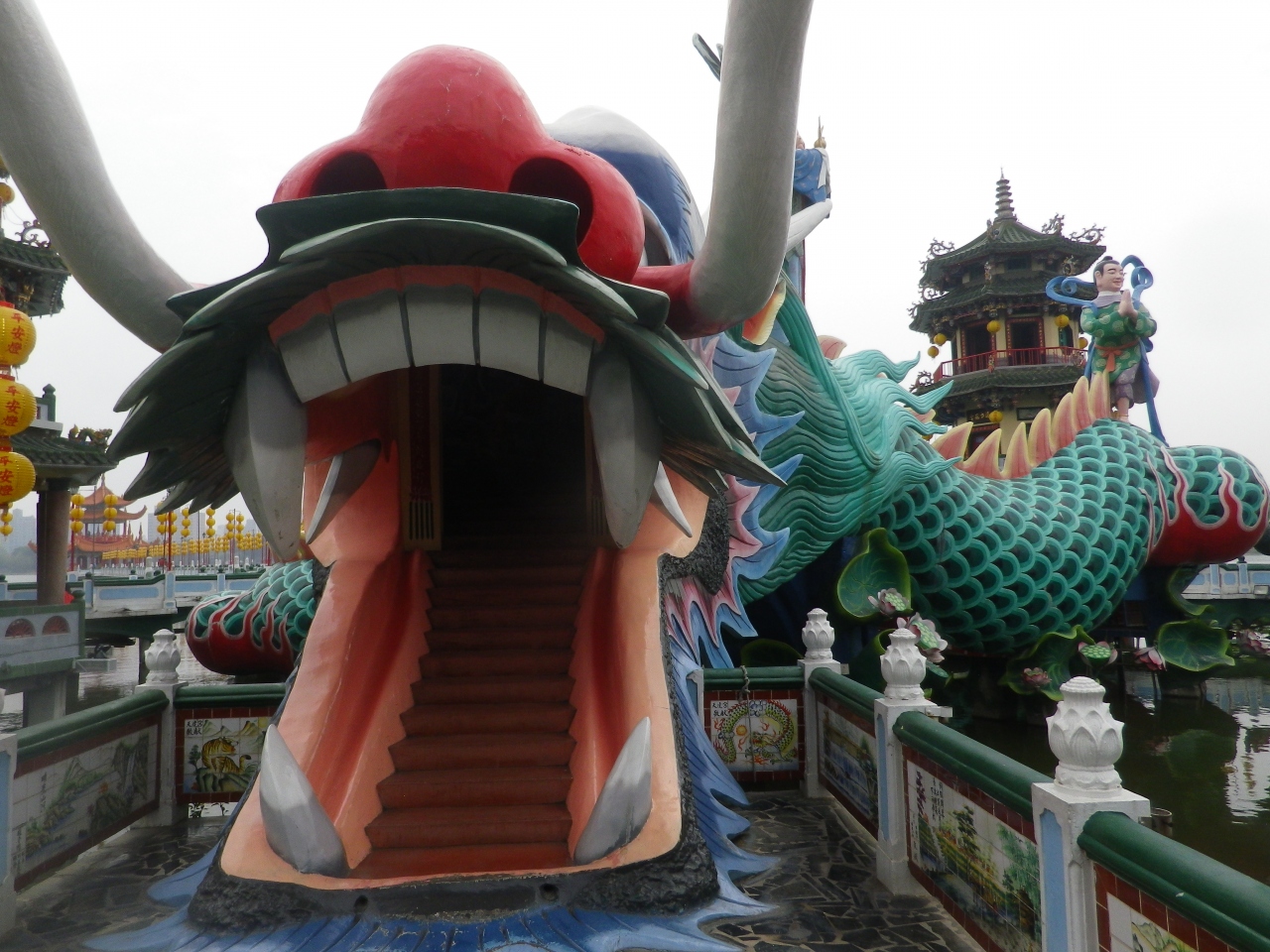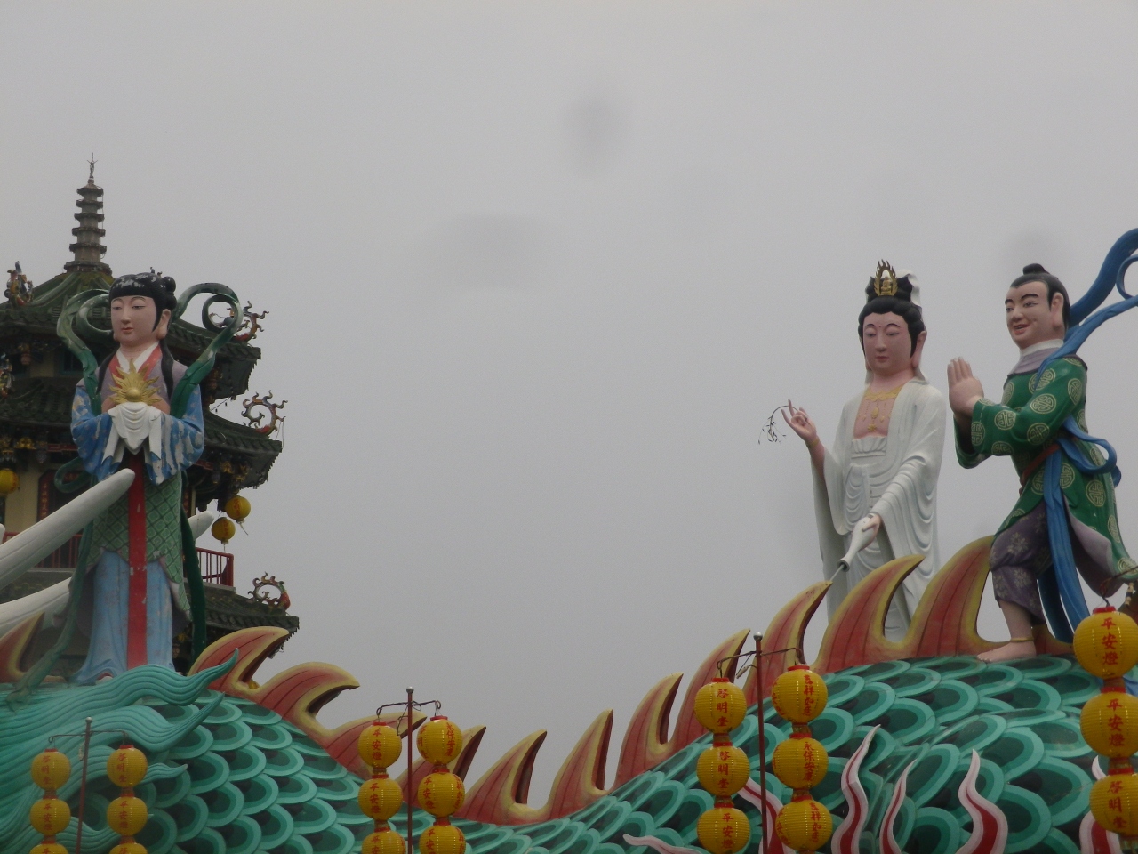 蓮池潭湖畔の西側にそびえ立つ神像です、遠くからも72mもあるので目立ちます、湖畔から専用の橋を歩くと存在感がある神像に到着、手に握られている七星宝は長さ38.5mあり剣のすごさがわかります、入口には蓮池があり綺麗な蓮が見られます、ここも蓮池潭の主要スポットで多くの人が来ています。