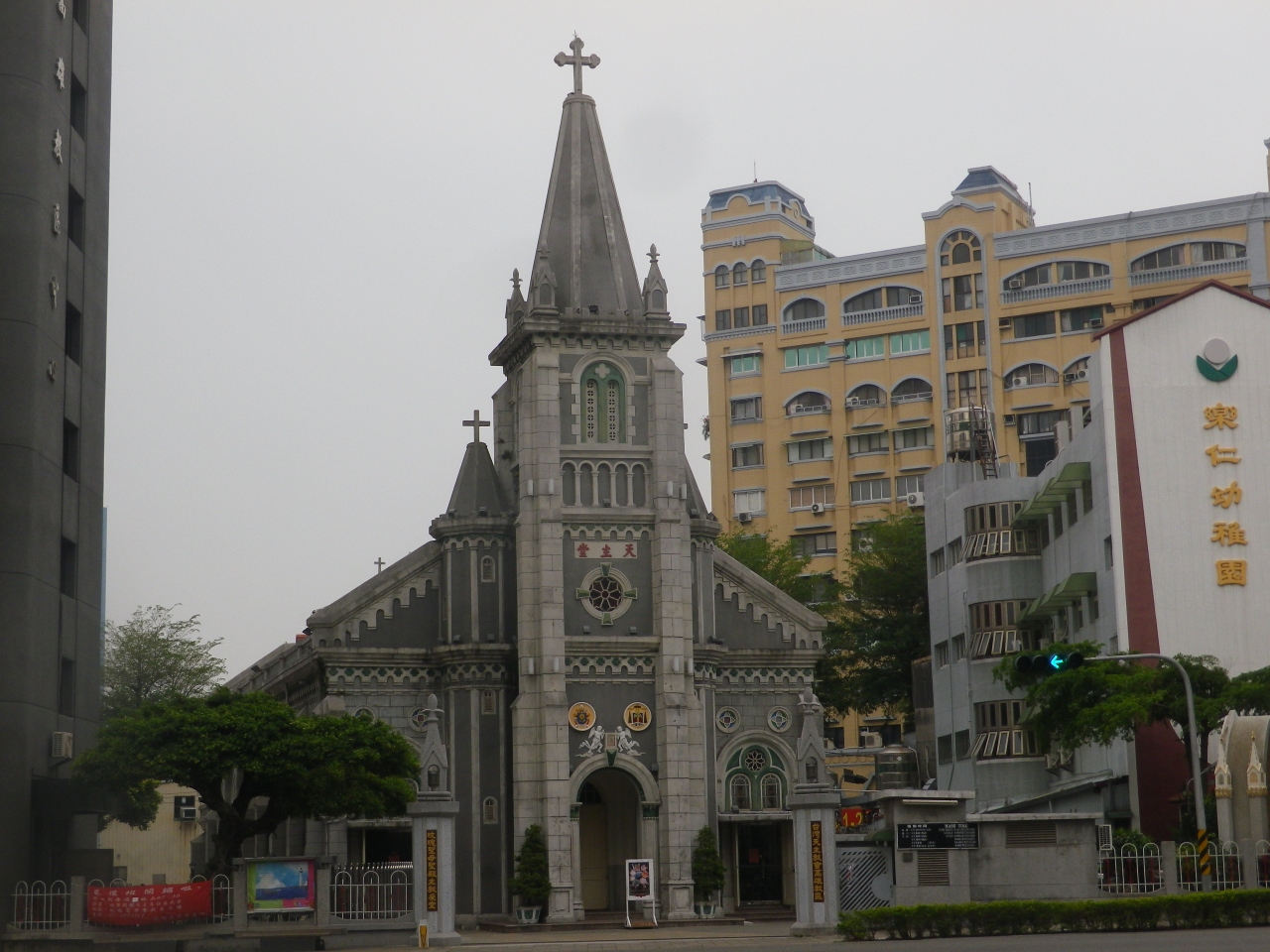 高雄市街を流れる愛河に架かる五復三路の高雄大橋そばにある台湾初のカトリック教會、1859年開教の歴史ある教會で亜細亜三大聖堂の一つ、全体の建築様式は欧州のゴシック風で外観は格調高く、内部は特殊な雰囲気を有しています、外から眺めて中も楽しむと良いでしょう、敷地内に聖母亭があります。