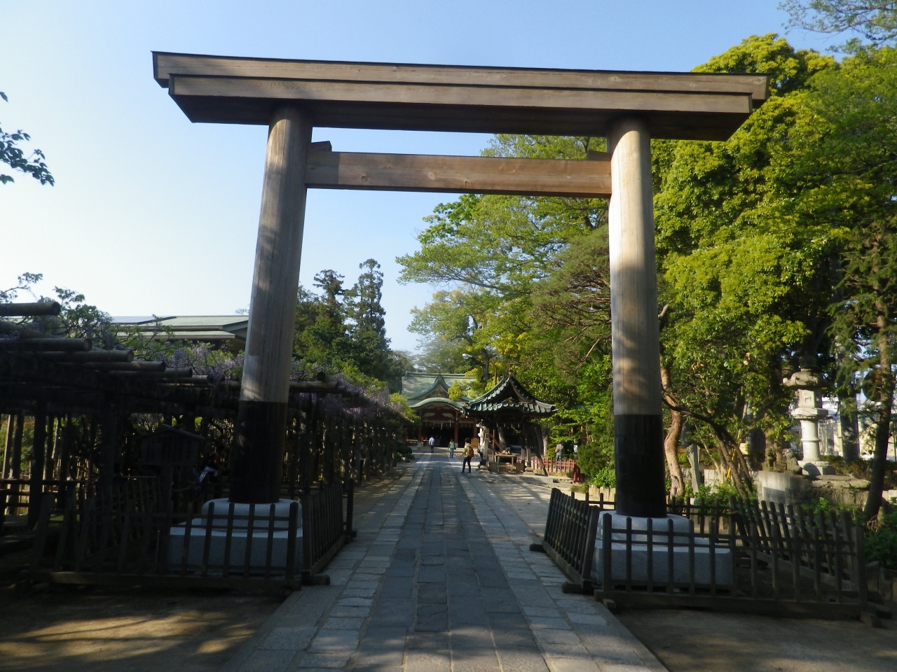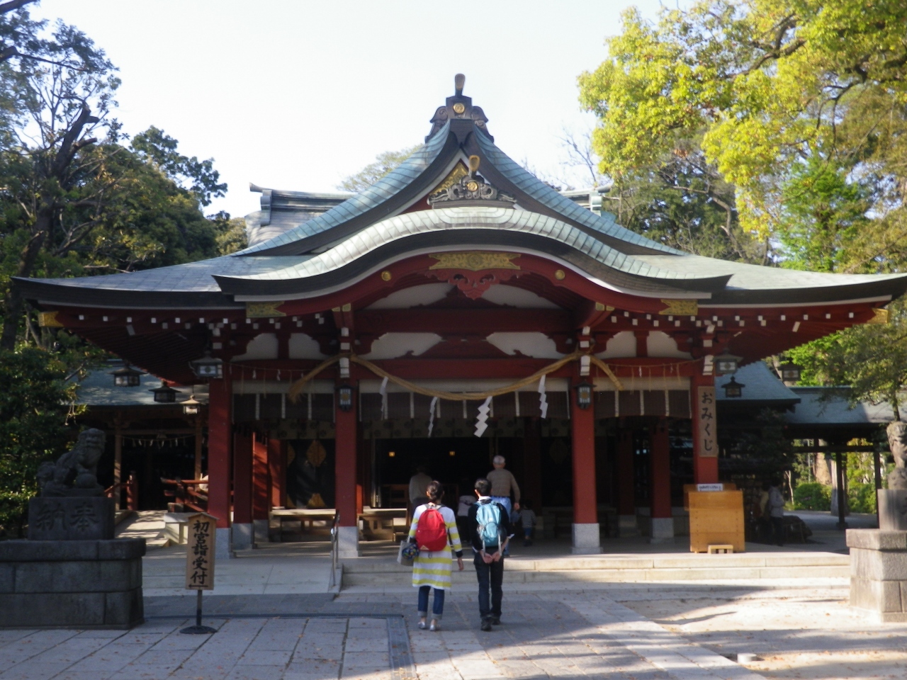 越谷市で一番大きい神社です、元荒川の宮前橋から長い参道があり、周囲は住宅街で、神社の当たりは緑の森公園・アリタキ植物園があり埼玉県のふるさとの森になっています。