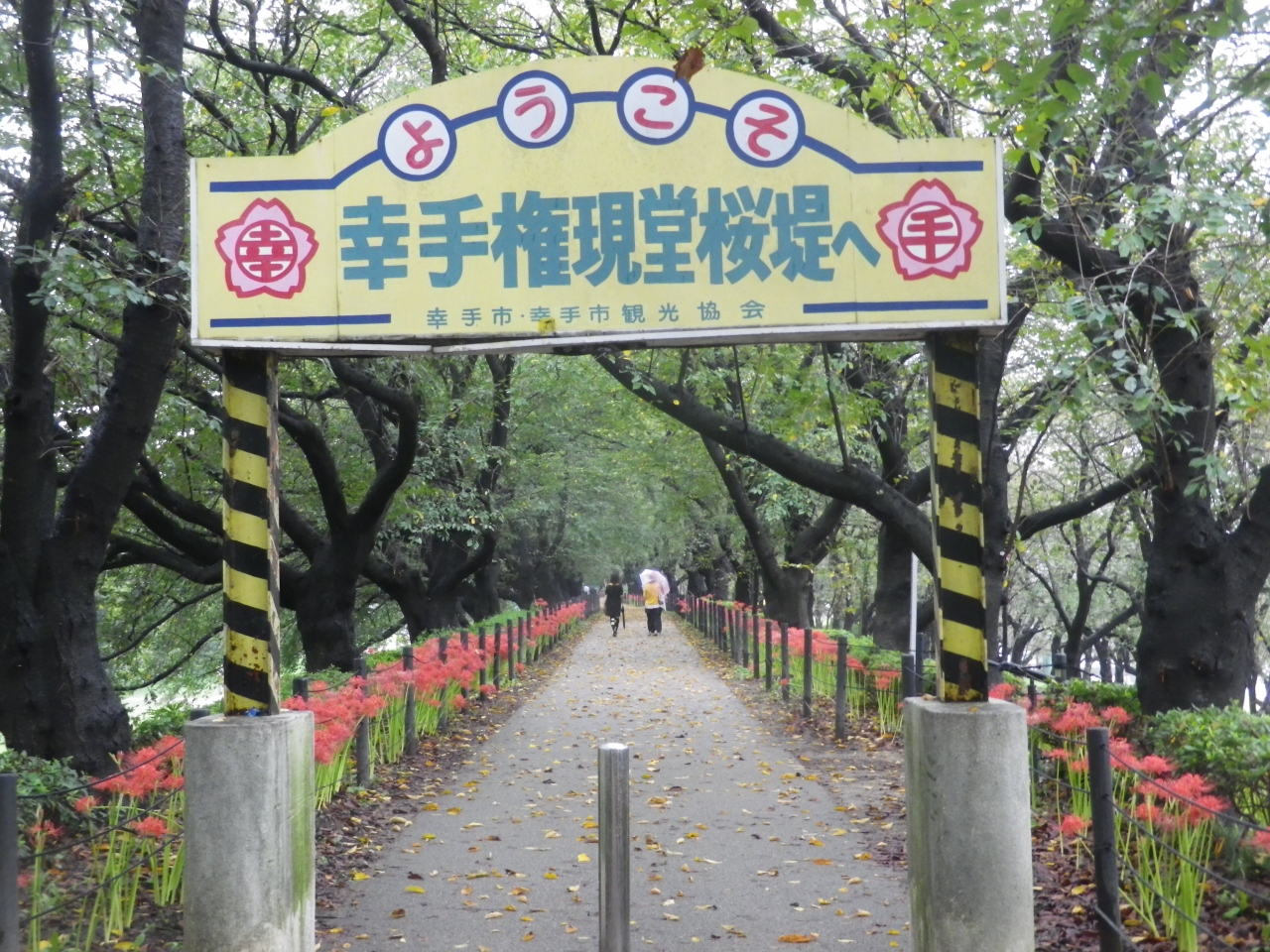 春の桜で有名な幸手の権現堂堤、秋には曼珠沙崋が土手一面に咲いて見事です、毎年、9月下旬から10月上旬に「幸手曼珠沙崋まつり」が行われています。