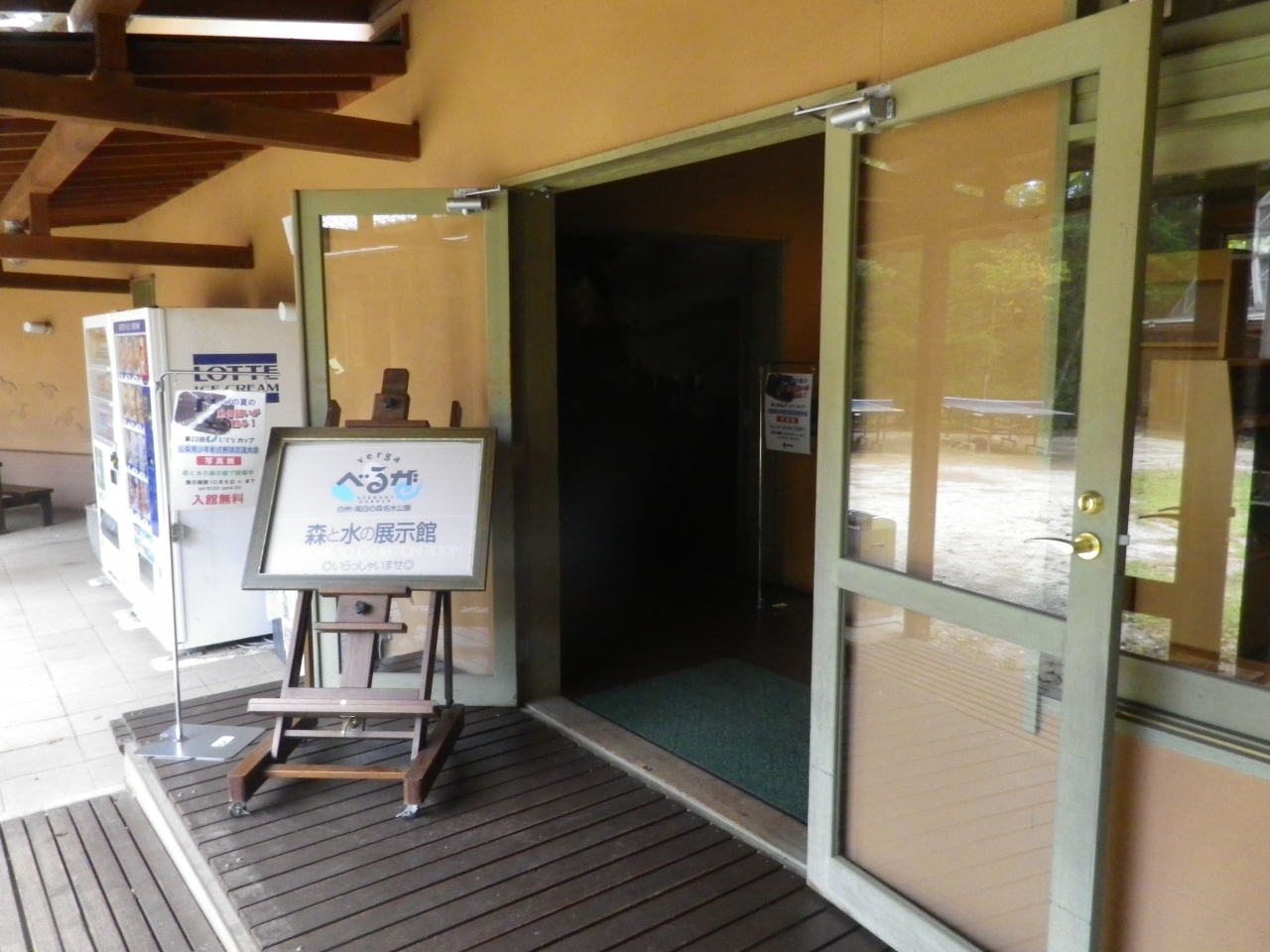 道の駅はくしゅうから入って、尾白川渓谷手前にある広大な敷地がある自然公園、宿泊施設や日帰り温泉施設、森と水の展示館、レストランや森の散策路などある、長時間でも楽しめる自然公園です。