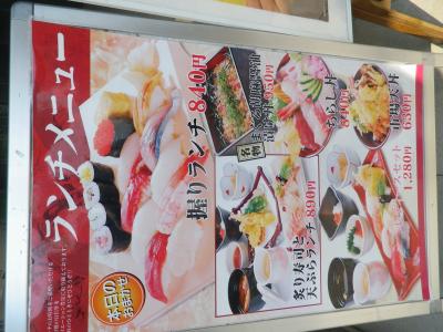 握りランチが840円で炙り寿司と天ぷらは890円、ちらし丼は840円で市場天丼は630円です、安いがしっかりした物が出てきました。- 旅行時期