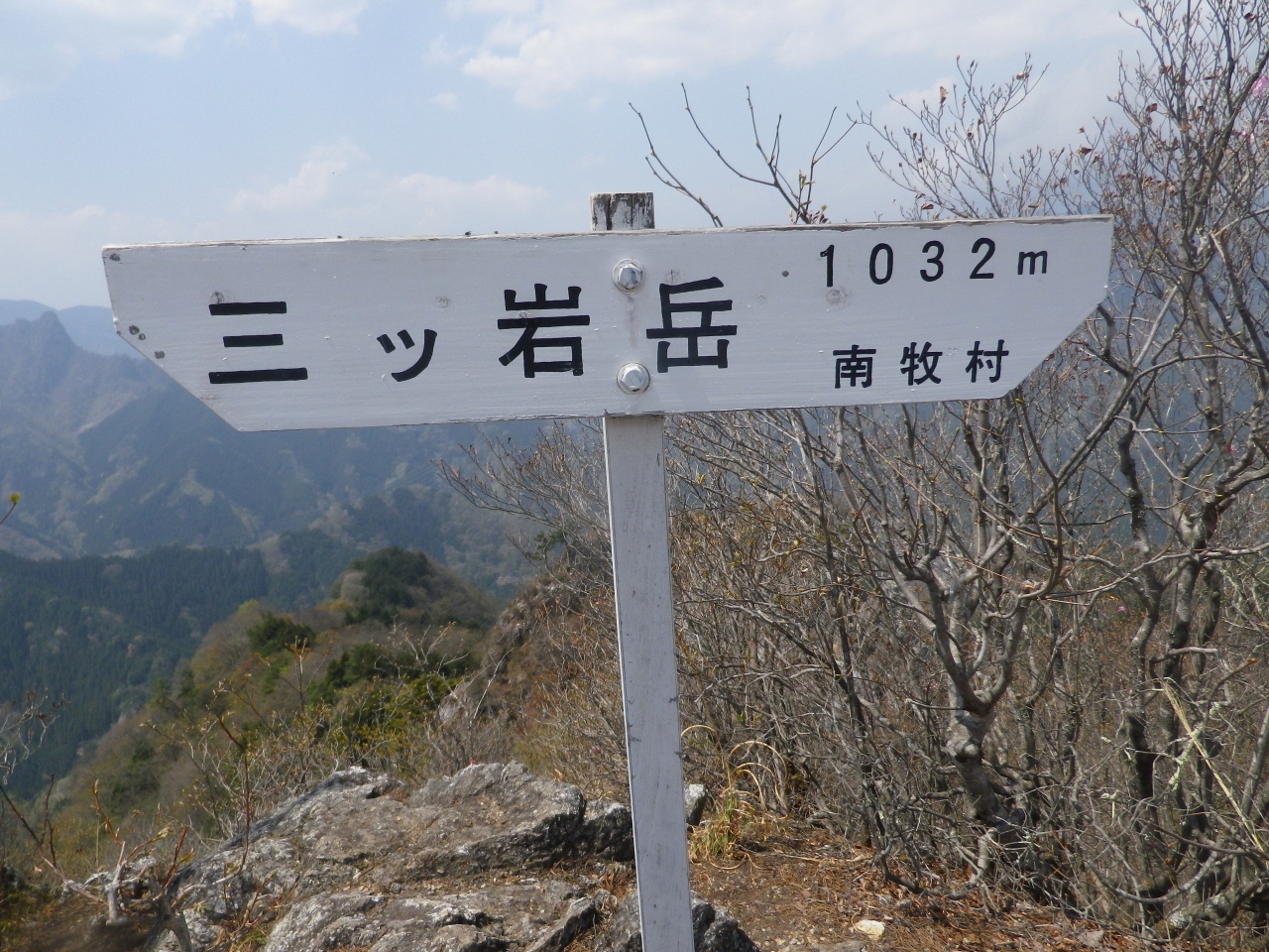 南牧村大仁田にある大仁田ダムの下にある登山口の駐車場から歩きました、登山口にはトイレがあります、登山口すぐに堰堤がありその先に分岐があります、左に行けば第一鞍部、第二鞍部を抜けて三ツ岩岳頂上(1032.1m)に出ます。