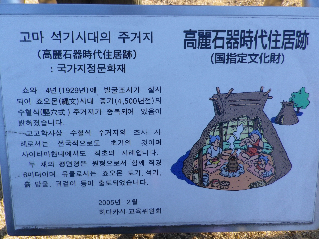 縄文時代中期の竪穴式住居跡で住居跡から多数の縄文土器が発掘されています、案内表示板に住居跡の縮図があります、又、この地らしくハングル文字での案内がありました。- 旅行時期
