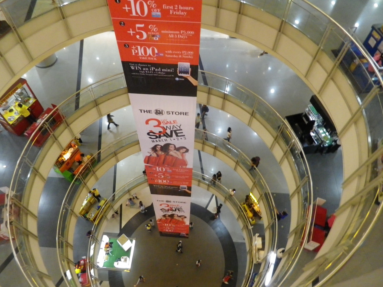 リサール公園に近いLRTのセントラル駅からすぐの場所にあり、鉄道利用行くには便利です、SMシューマート中心のショッピングモールで多種多様な品揃えで満足、飲食店も多くあり、フードコートも広く店数が多いので好みの飲食が出来ます、3階に吉野家があります。