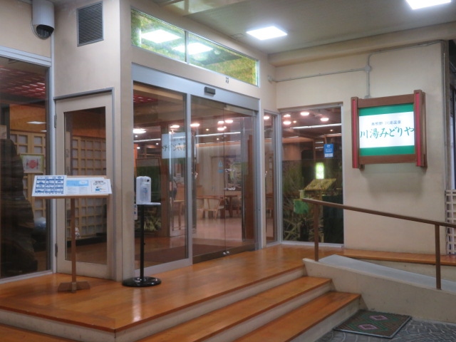山水館川湯みどりやで食事と温泉を楽しみました、仲間4人で山水館に、3人はみどりやで私は隣接してるまつやに宿泊、食事は食事会場で一緒に食べました、夕食はハーフバイキングでした、そこそこの料理があり満足、鮎の塩焼きもありました、朝食もバイキング、ほぼ満足の料理でした、お風呂は大浴場と大塔川の河原にある露天風呂があり、自然を満喫しながらゆっくり入りました、入口に源泉飲泉所があります。