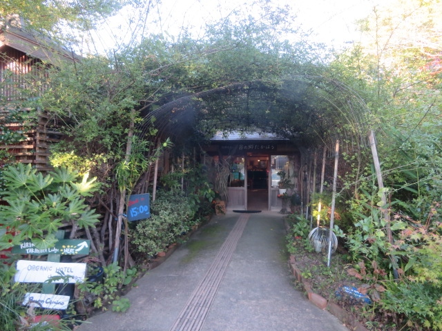 熊野古道中辺路の高原霧の里休憩所・高原熊野神社に近い場所の高台にある宿です、温泉付きの宿です、建物内は個性ある装飾で、食事も工夫された料理が特徴です、オーナーが話好きで個性的です、外国人に人気があるようで利用者が多いようです、高台にあるので客室からの眺めがいいです、晴れた夜は星が綺麗です。