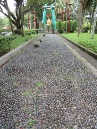 台北駅から8分位、MRT淡水信義線の台大醫院駅からすぐの場所にある二二八和平記念公園内にある健康歩道・足つぼロードです、丸石が全長約30m程ひきつめられています、無料で利用できます、台湾内で何か所かこのような施設を見たことがありますが歩くと痛いのでいつも見るだけです、行った時には誰も歩いていませんでした。