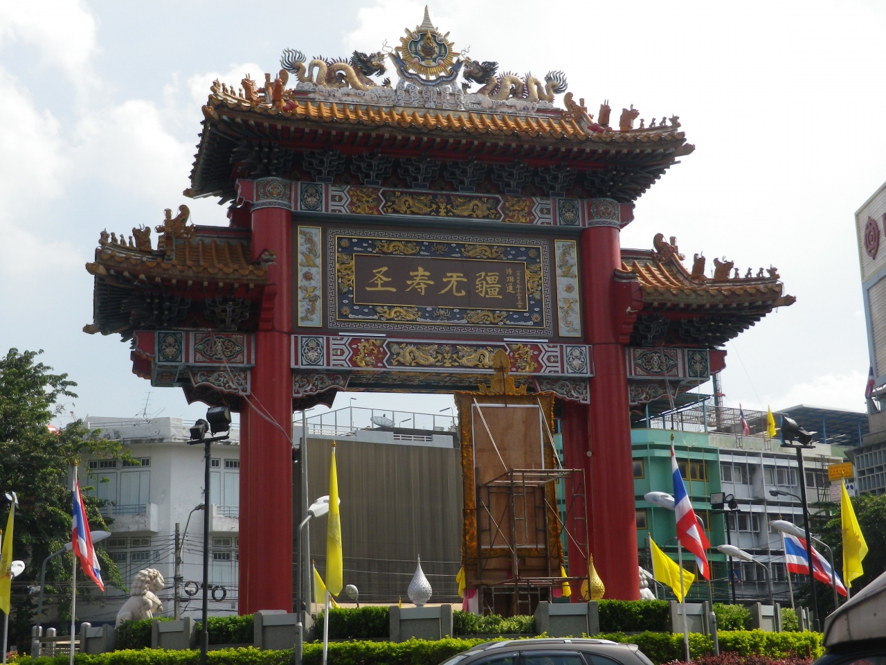 フアラムボーン駅から行くのが便利です、中華街の入口に牌楼(中華門)があります、又、近くにインホメーションもあります、中華街の中央に大通りのヤオワラート通りが通っています。
