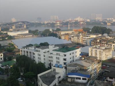 市街地の中心からちょっと離れた、BTSタークシン駅の南2km位のチャオプライヤー川沿いにあります。