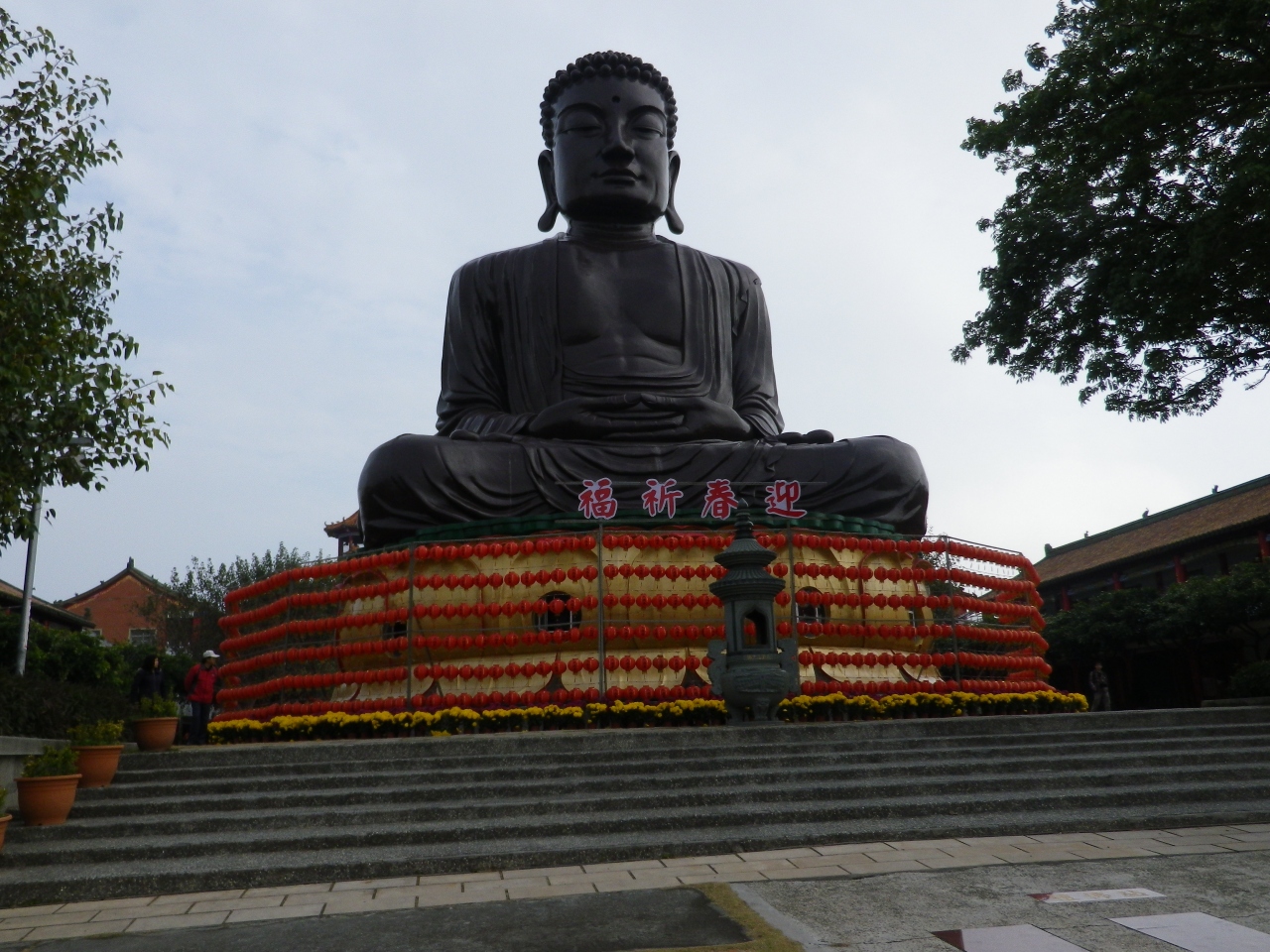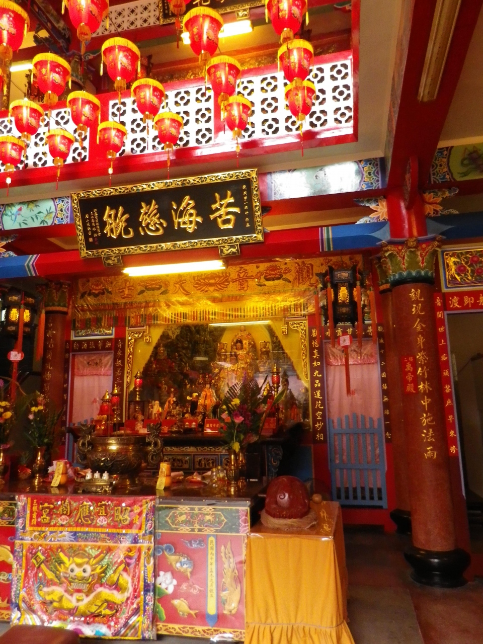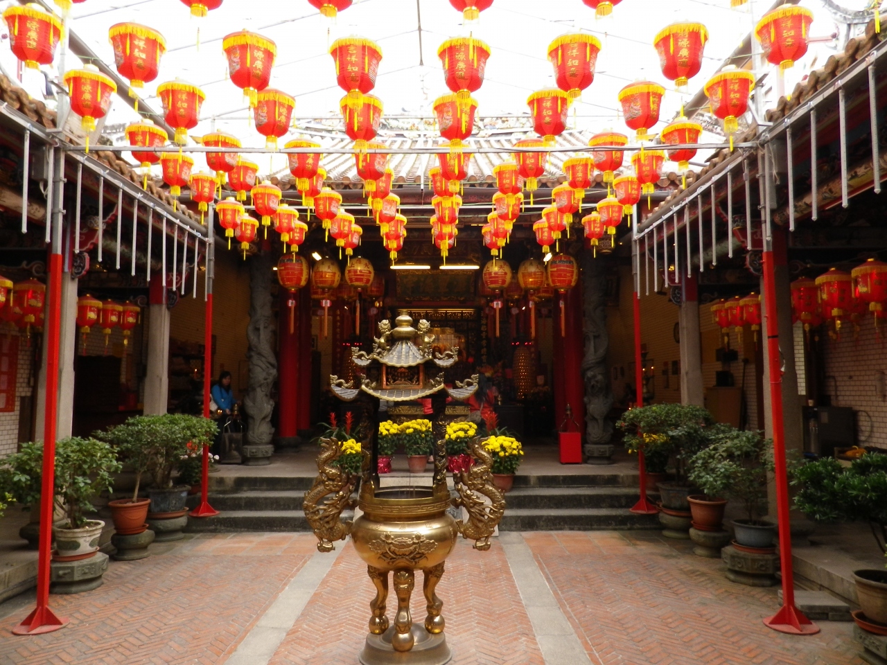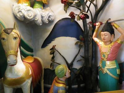 寺院内の彫刻や立派な門が見られる、普段から多くの信者で賑わっていて、寺院前には多くのお菓子販売のお店やカキのかき揚げなど食べさせるお店が並んでいる。- 旅行時期