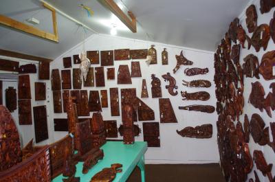 受刑者が彫上げたストリーボードの大小の作品が数多く展示されています