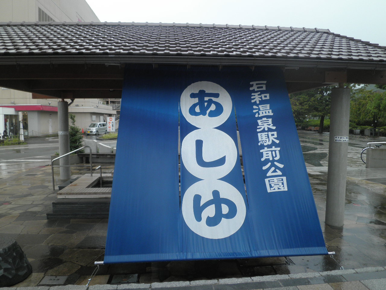 石和温泉駅の前にありますので、ちょっとした電車やバス