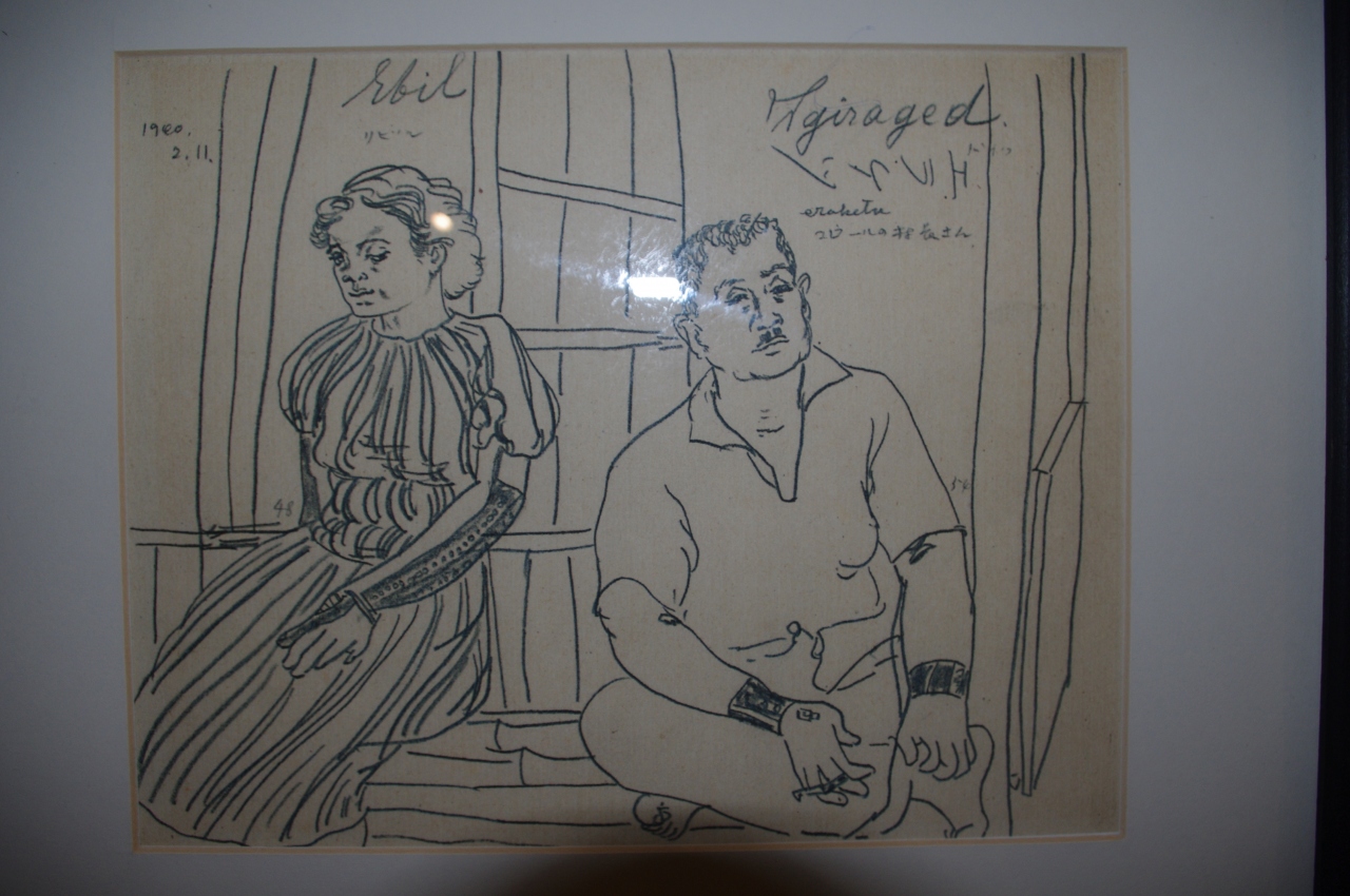 物や写真が展示されています、赤い日本の郵便ポストや画家「丸木俊」氏の1940年の作品もあります。