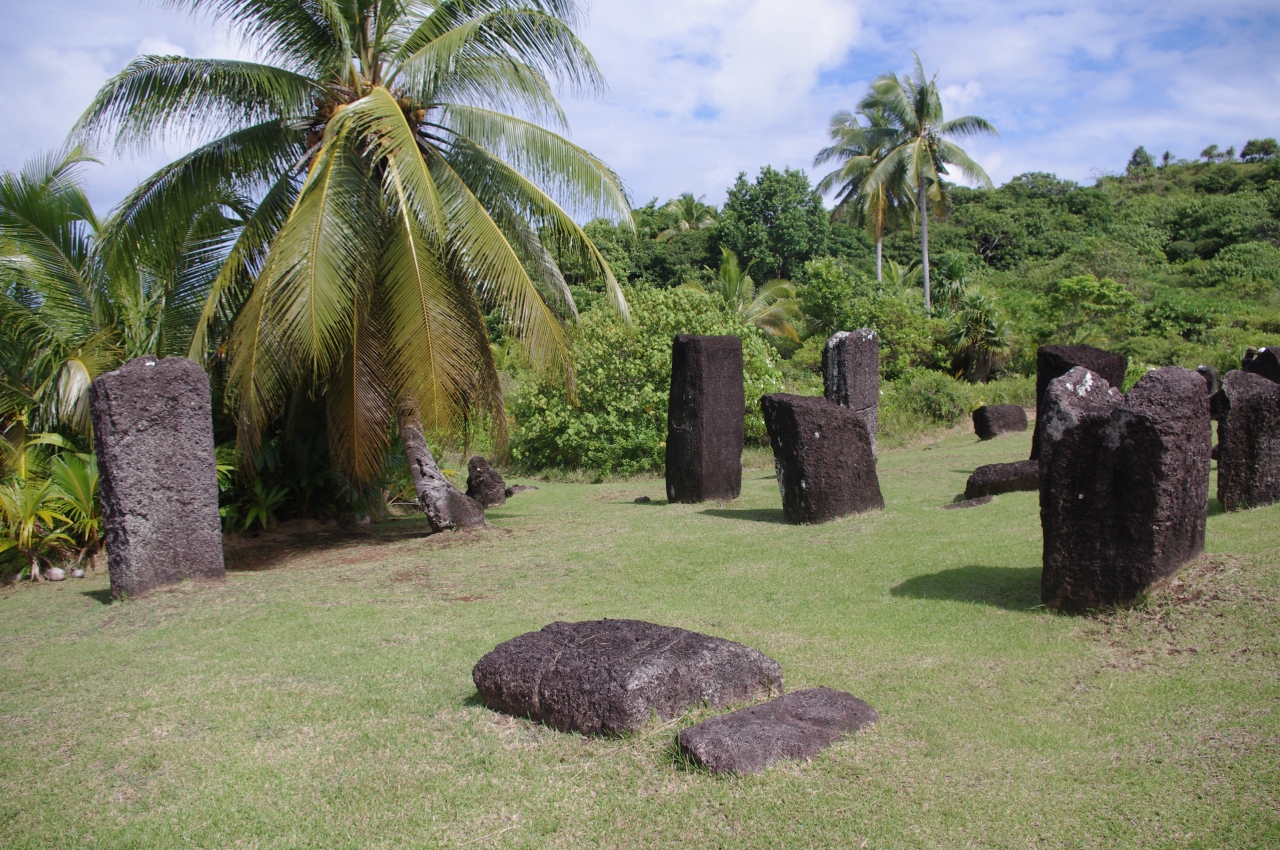 玄武岩の石碑の一群で50基以上あります、誰が、いつ、何のために造ったのか