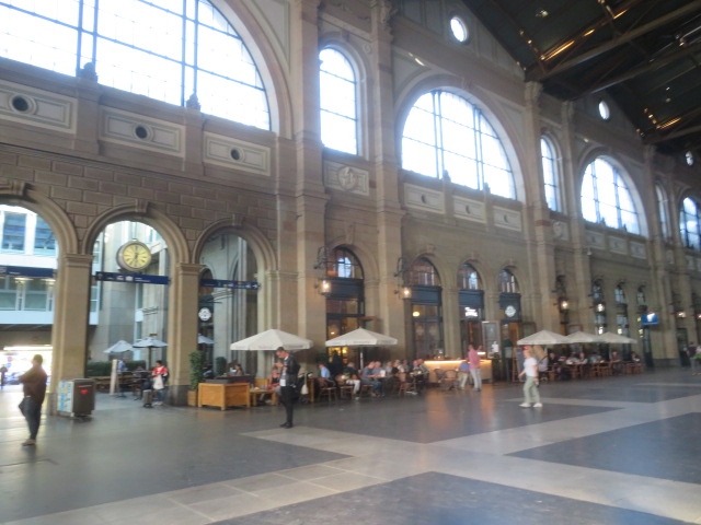チューリッヒ空港から中央駅に到着、空港へ行くと時とチューリッヒ市街の観光の出発地として利用されています、大きな駅で天井も高くヨーロッパの駅らしいです、構内には観光案内所、ショップ、飲食店などあります、電車を利用する時には券売機ですが、ちょっと分かりづらかったです、窓口は番号札を取って並びます、ドイツやイタリアに行く長距離電車も多くあります。