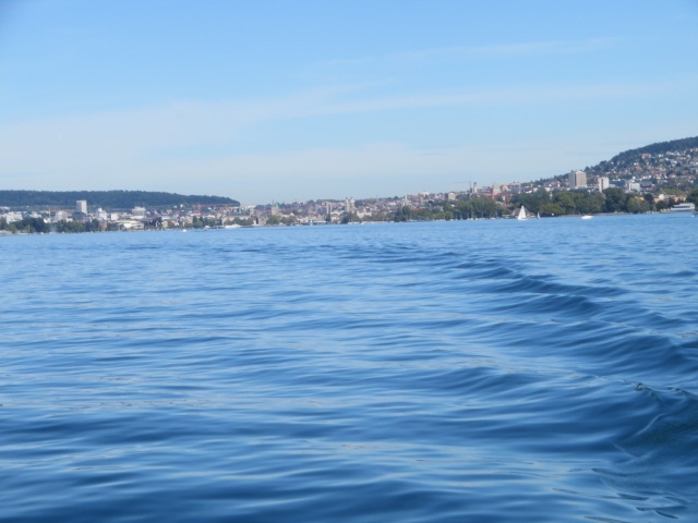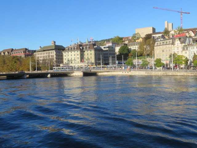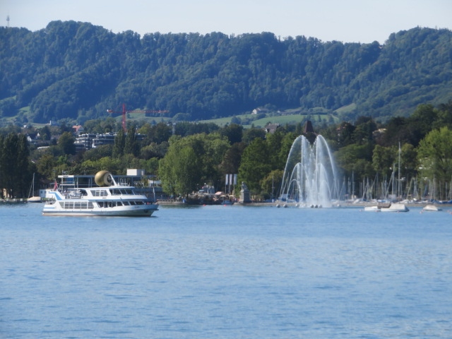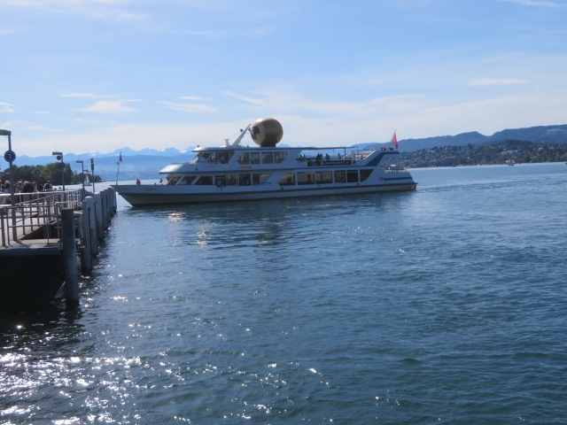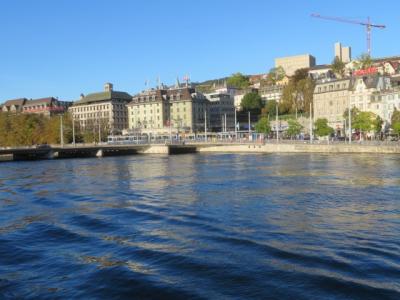 チューリッヒ湖入口ケー橋そばにある遊覧船乗り場から1時間半のコースに乗り、景色を楽しみました、料金は8.8スイスフランです、11時頃乗りましたがほぼ満席でした、アジア人は乗っていませんでした、途中、何か所かの桟橋に寄りながら航行しました、湖と周辺の街並み、遠くの山々を眺めながらのんびりと楽しみました。