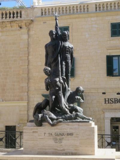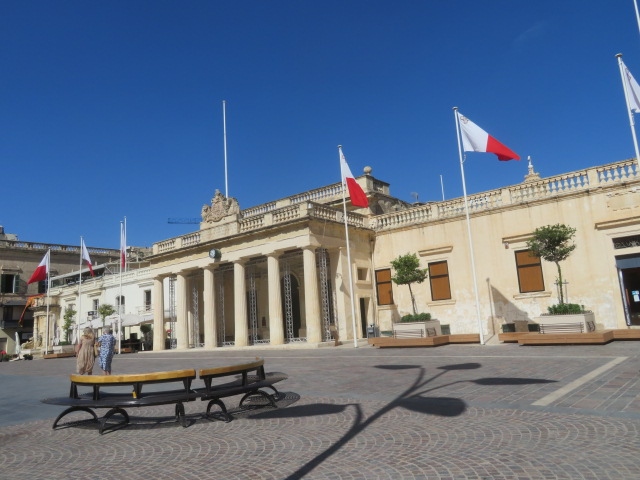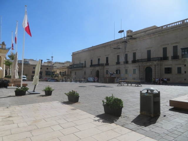 世界遺産の要塞都市、ヴァレッタ市街のほぼ中心にある広い広場です、騎士団長の宮殿前にあります、ヴァレッタの散策では休憩に適している場所です、聖ヨハネ大聖堂を見た後立ち寄りました、噴水やベンチがあります、夜はライトアップされるようです。