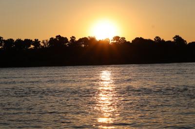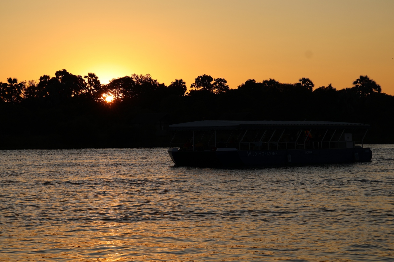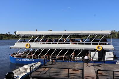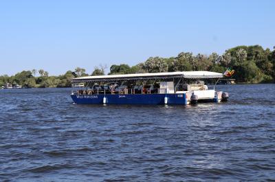 ツアーに参加してサンセットクルーズを楽しみました、船は貸切で、船内では飲食が自由に出来ました、料金に入っているのでアルコール類も無料で呑めました、ザンビア側との国境を航行しながら野生動物や鳥類を見ながら夕日が見える時間までゆっくり出来ました、船内からの夕日がとっても良かったです、約2時間楽しめました。