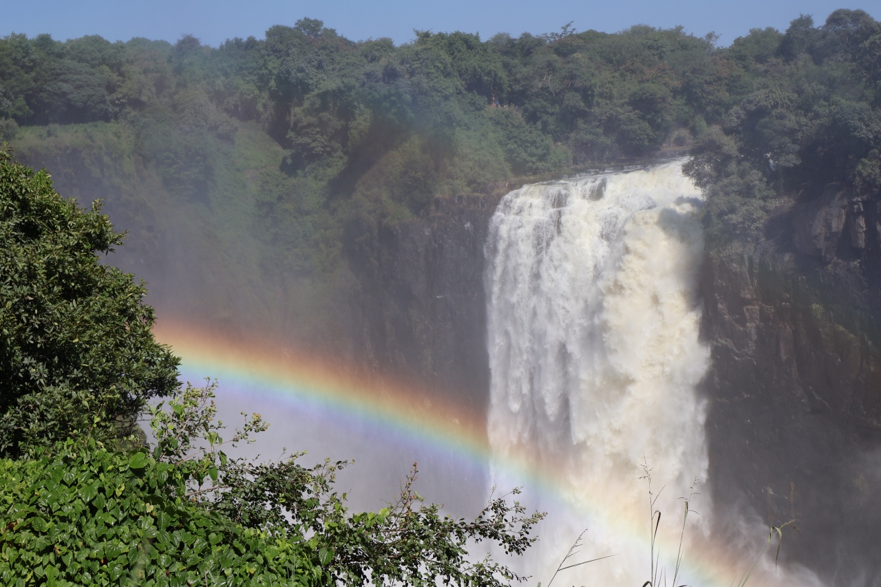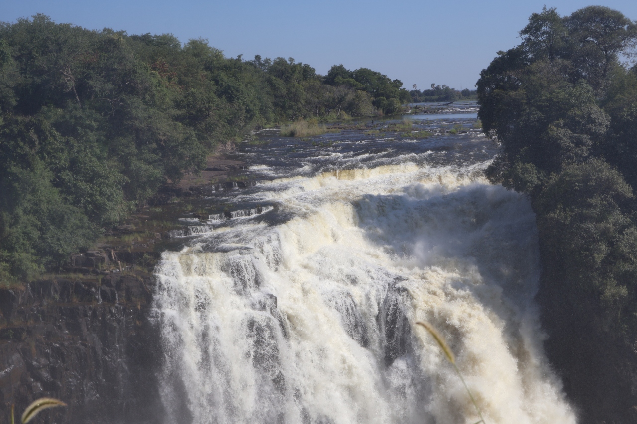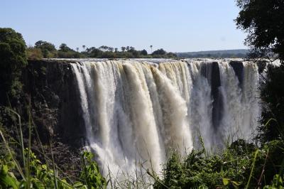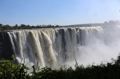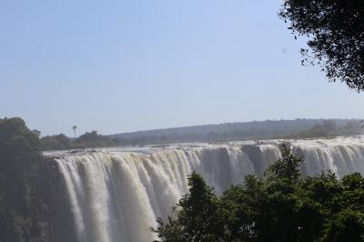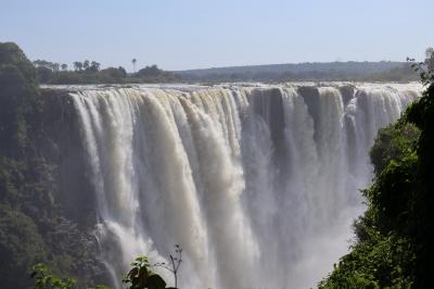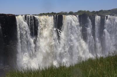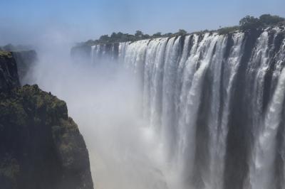 ナイアガラの滝、イグアスの滝と共に世界三大瀑布の一つになっているビクトリアの滝をジンバブエ側とザンビア側からたっぷり見ることができました、ショップが並んでいる入口から整備されていて歩きやすい遊歩道を歩いて滝を見ることが出来る場所、数カ所に行きました、すごい勢いで流れる滝を写真を撮りながら見ました、場所によっては水しぶきがすごいので雨具を着用して見ました、人気の滝なので見物者が多くいました。