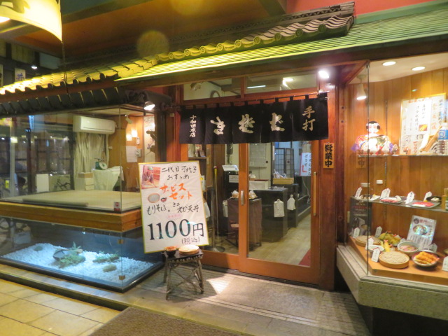 浅草駅に近いメトロ通りにある人気の蕎麦屋さん、サービスセット1100円の表示がされていたので入って見ました、もりそばとミニ天丼のセットで天丼には海老天が一つ載っていました、そばは十和田湖周辺の物を使っているようで美味しかったです、そばつゆがちょっと少なかったです、お店の1階は狭いですが2階は広いようです、20時には閉店します。