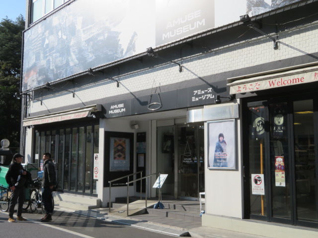 浅草観音・浅草寺の二天門そばにある布文化と浮世絵の美術館・アミューズミュージアムの見学をしました、1階は和のセレクトショップでお土産屋で2階から4階までが展示室になっていました。